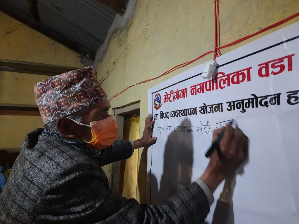 सुर्खेत । सुर्खेतको भेरीगंगा नगरपालिकाको वडा न. २ मा वडा विपद् व्यवस्थापन तथा जलवायु उत्थानशील योजना अनुमोदन भएको छ ।