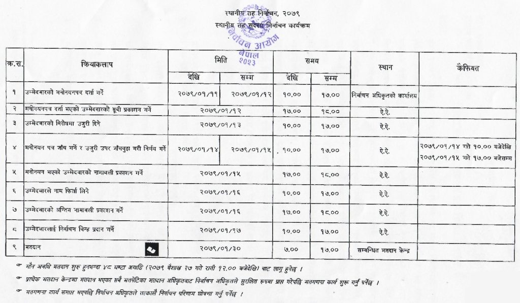 यस्तो छ स्थानीय तह चुनावको कार्यतालिका