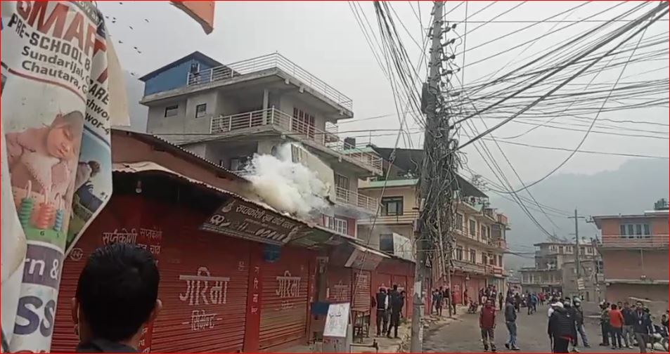 अहिले त्यहाँ बाक्लो संख्यामा प्रहरी टोली खटिएको छ। प्रहरीले स्थानीयमाथि अश्रुग्याससमेत प्रहार गरेको छ।