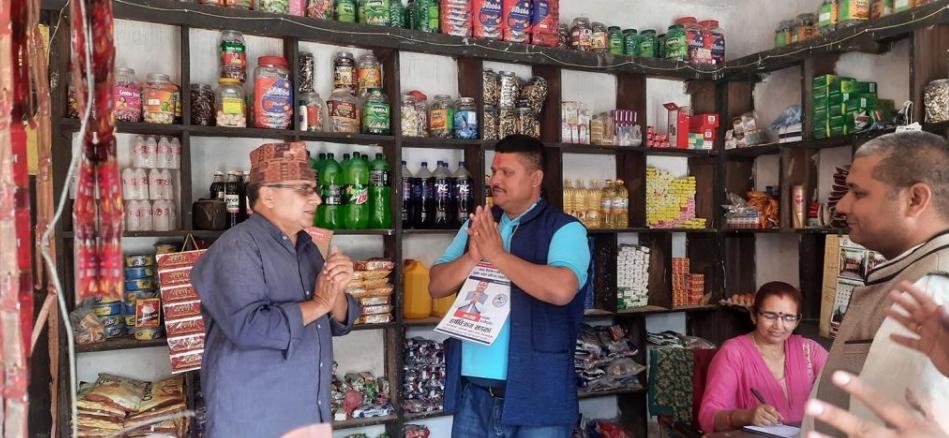 पसलमै पुगेर मत माग्दै लोकतान्त्रिक साझा व्यावसायिक गठबन्धनका उम्मेदवार (तस्विरहरु)