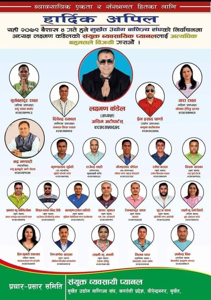सुर्खेत वाणिज्य संघको अध्यक्षमा कँडेल विजयी