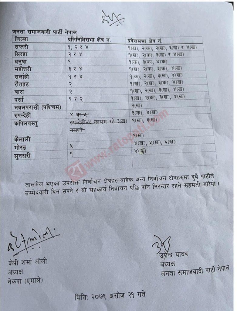 एमाले र जसपाबीच प्रतिनिधिसभाका ५२ सिटमा तालमेल