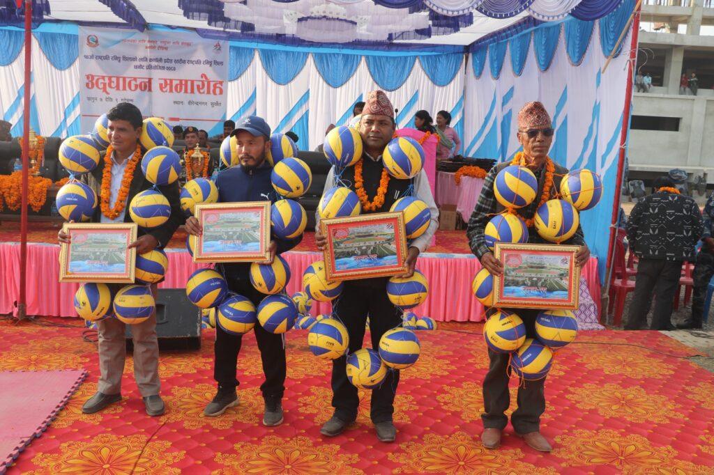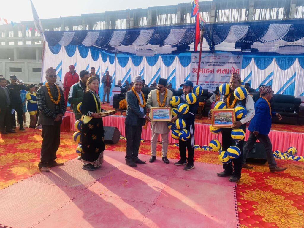 जिल्ला खेलकुद बिकास समितिकाे सिफारिसमा भई उद्घाटन समाराेहमा सहभागी भएका पालिकाका प्रमुखहरूलाई परिषद्ले भलिबलको माला लगाई सम्मान गरेको छ । सहभागी जिल्लाहरु विभिन्न झाकिहरु सहित सहभागी भएका थिए ।