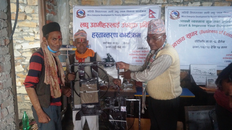 संघिय सरकार र गाउँपालिकाको आ.व. २०७७÷०७८ को वार्षिक स्वीकृत कार्यक्रम वाट मेडेप मोडलमा गरिवीनिवारणका लागि लघु उद्यमविकास कार्यक्रमकार्यन्वयनमा भएपछि कार्यक्रमलागु भएकागाउँपालिकाका सवै वडाका लक्षित परिवारका महिलाहरु माग अनुसार सिप विकास तालिम लिएका हुन् । स्थानीय स्तरमै १३ वटा तलिमहरु लिई उद्यम सञ्चालन गरेको ठाटीकाँध गाउँपालिका प्रमुख प्रशासकिय अधिकृत मनबहादुर थापाले बताए ।