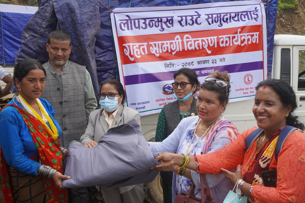 ‘गैरराउटेलाई कोटको राजा र आफुलाई बोटको राजा’ भन्न रुचाउने समुदायलाई प्रदेश सरकार, सामाजिक विकास मन्त्रालय, गुराँस गाउँपालिका, सोसेक नेपाल र राकेश इन्टरप्राइजेज काठमाडौंको सहयोग र समन्वयमा राहत वितरण गरिएको सामाजिक सेवा केन्द्र सोसेका संस्थापक अध्यक्ष हिरासिंह थापाले बताए ।