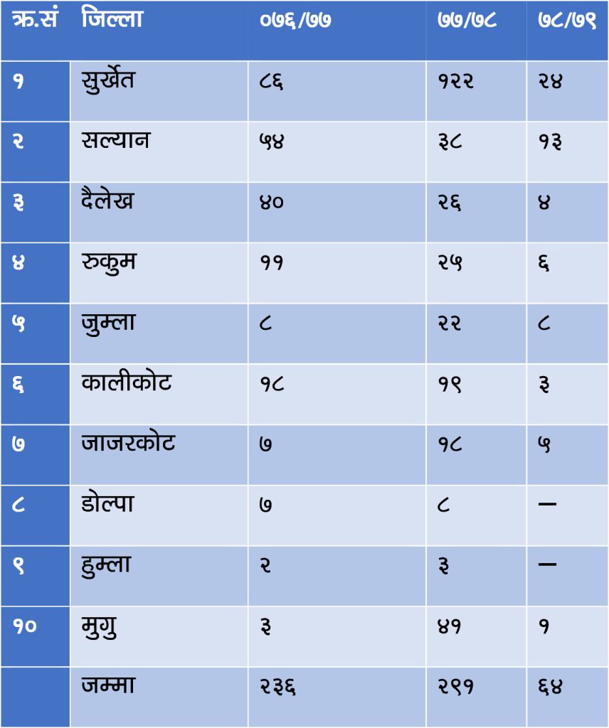 नोट स् उल्लेखित तथ्याङ्कमा मुगुमा घटेको दुर्घटनालाई समेटिएको छैन्
