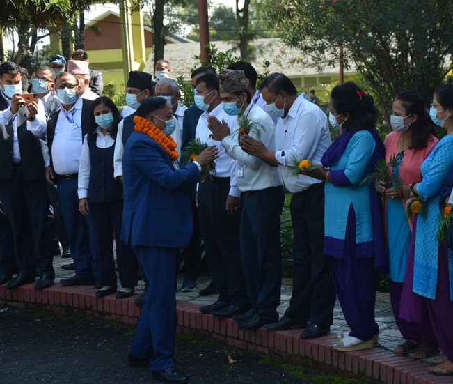 शिक्षामन्त्री देवेन्द्र पौडेल विहीबार बिहान निरीक्षण भ्रमणका लागि भन्दै सानोठिमीस्थित प्राविधिक शिक्षा तथा व्यवसायिक तालिम परिषद (सीटीईभीटी) मा पुगे । मन्त्री आउने थाहा पाएका कर्मचारीहरु कामै रोकेर कार्यालय अगाडि नमस्कार गर्दै लाइनमा उभिए । नमस्कार गर्दै लाइनमा उभिएका कर्मचारीहरु हेर्दा पञ्चायतकालको झल्को आउँथ्यो ।