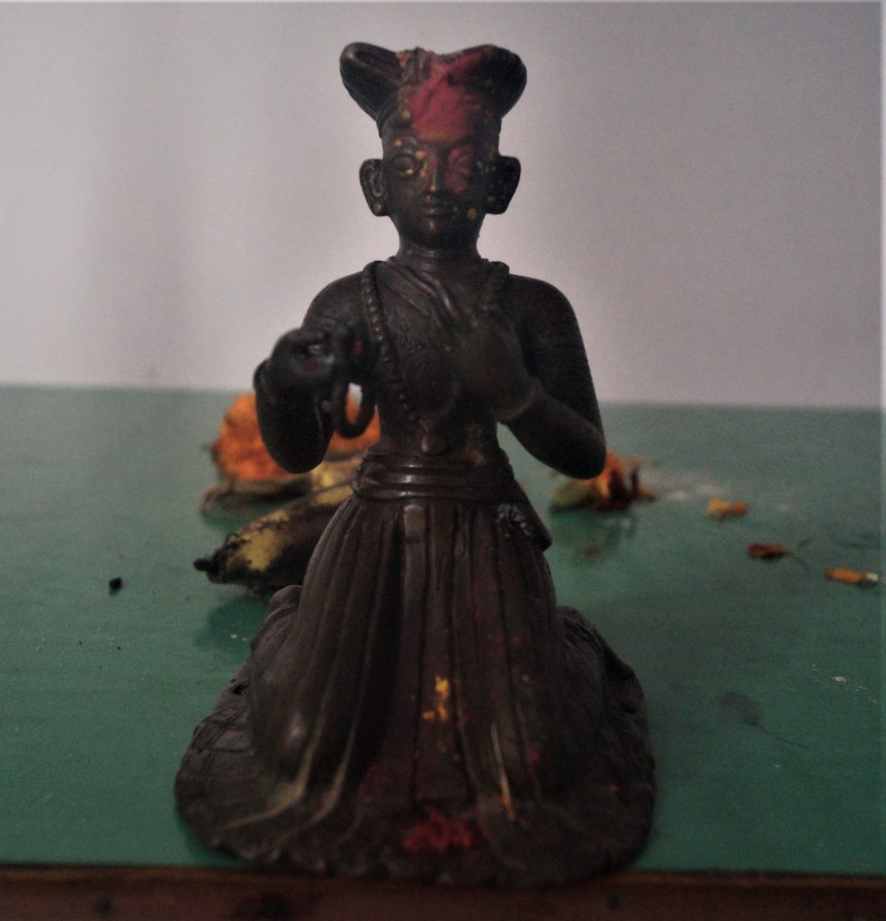 बुहमूल्य धातुवाट निर्मित मुर्ति कुन देउताको हो अहिले सम्मपनि एकिन भएको छैन । झट्ट हेर्दा पृथ्वीनारायण शाहको जस्तो कद देखिने मुर्तिको तौल ५ किलो भन्दा बढी रहेको छ । मुर्तिबारे अध्ययन गर्न काशीकाँध पुगेका इतिहासविद् पूर्णप्रकाश नेपाल ‘यात्री’ले राजा जनकको मूर्ती हुनसक्ने आशंका गरेका थिए ।