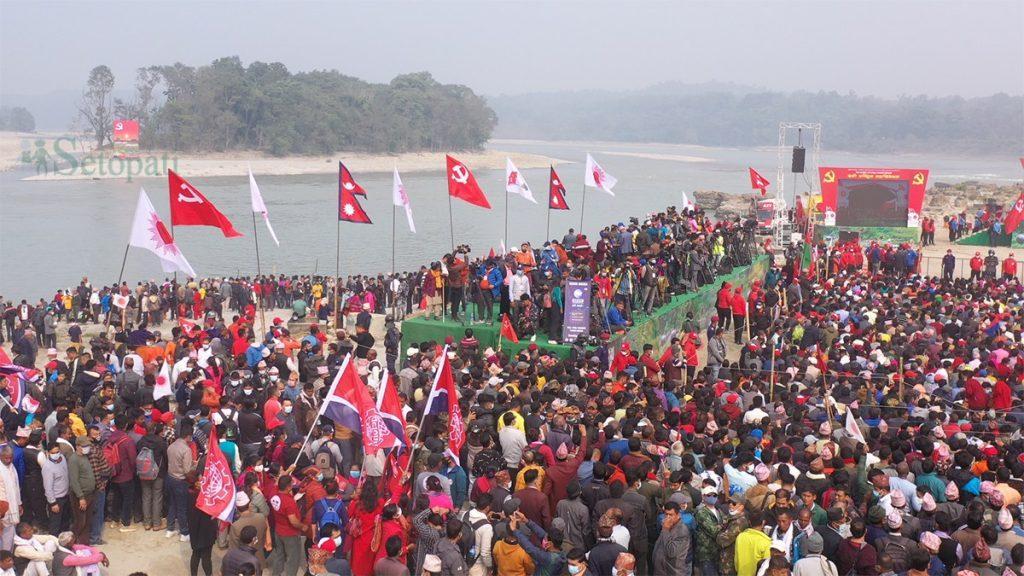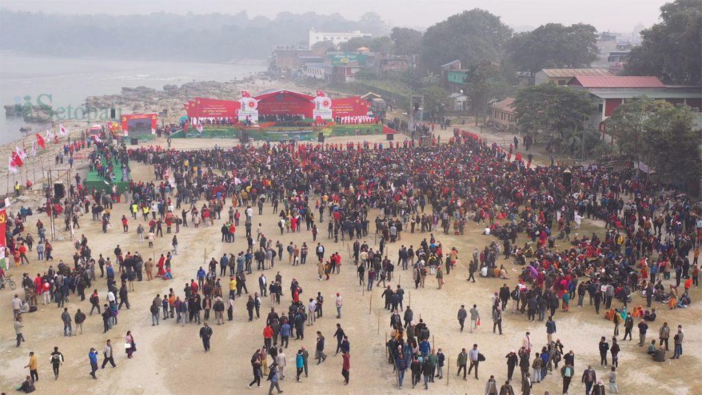नारायणघाटको नारायणी किनारमा बनाइएको मञ्चमा उद्घाटन समारोह आयोजना गरिएको छ। एमाले अध्यक्ष केपी शर्मा ओलीले मञ्चबाट रिमोट थिचेर झन्डोत्तोलन गरेर महाधिवेशन उद्घाटन गरेका छन्।