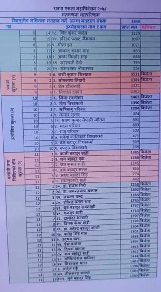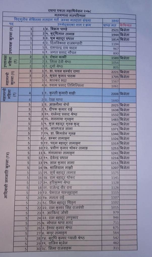 राप्रपाको केन्द्रीय सदस्यमा को-को भए विजयी ? (सूचीसहित)