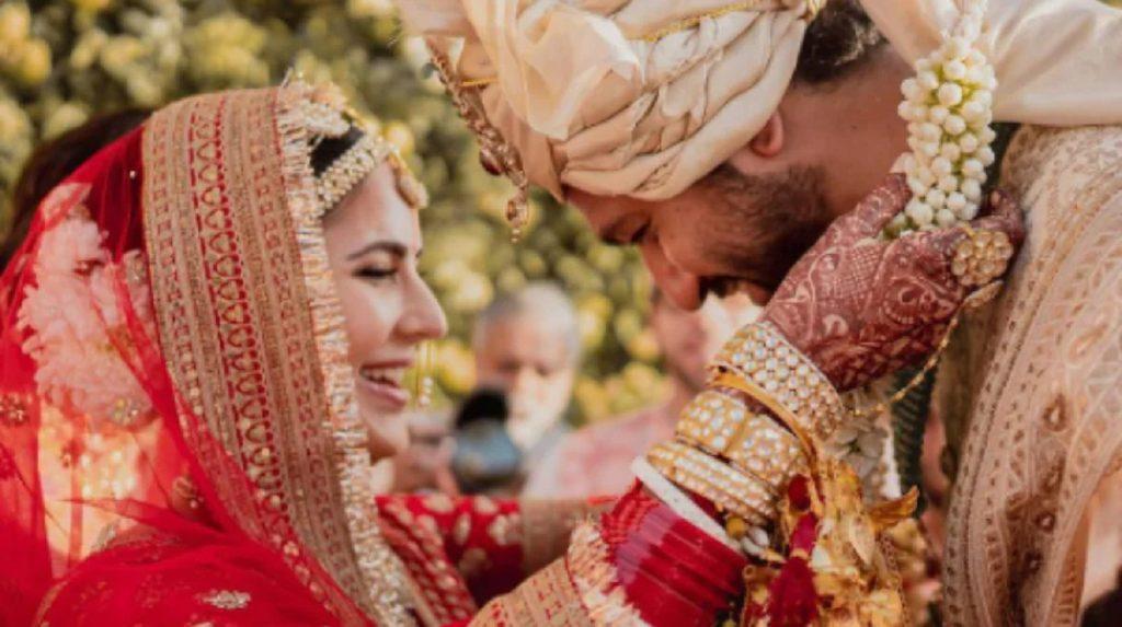 कट्रिनाले गजरा लगाएकी थिइन् र रातो लेहेंगामा देखिएकी थिइन्। सोही क्रममा विक्की कौशल सेतो शेरवानीमा देखिएका थिए।