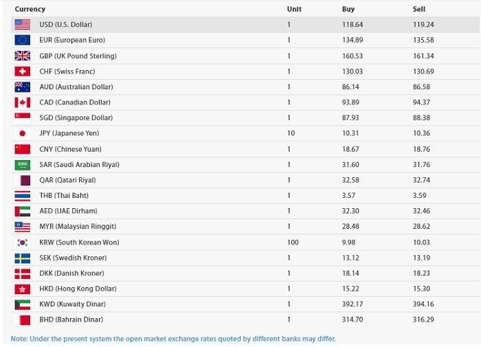 अमेरिकी डलर एकको खरिददर ११८ रुपैयाँ ६४ पैसा र बिक्रीदर ११९ रुपैयाँ २४ पैसा कायम छ। युरोपियन युरो एकको खरिददर भने १३४ रुपैयाँ ८९ पैसामा कारोबार भइरहेको छ। यसको बिक्रीदर १३५ रुपैयाँ ५८ पैसामा छ।